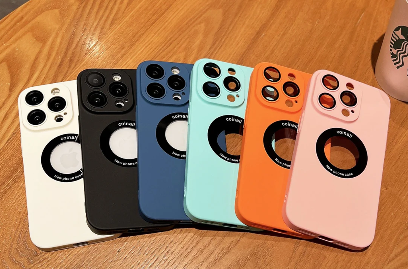 LuxuryKase Plain Hard PC Logo Cut Phone Case with Camera Lens Protector, Compatible with Mag-safe, Wireless Charging, and Magnetic Attachments For Iphone