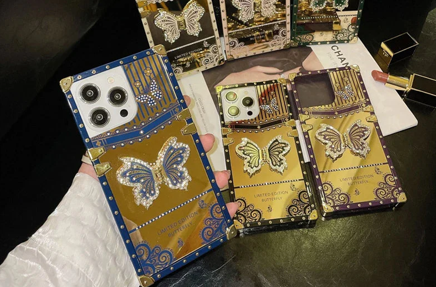 LuxuryKase LK162 Elegant Butterfly Stand Back Mirror Case Cover For iPhone