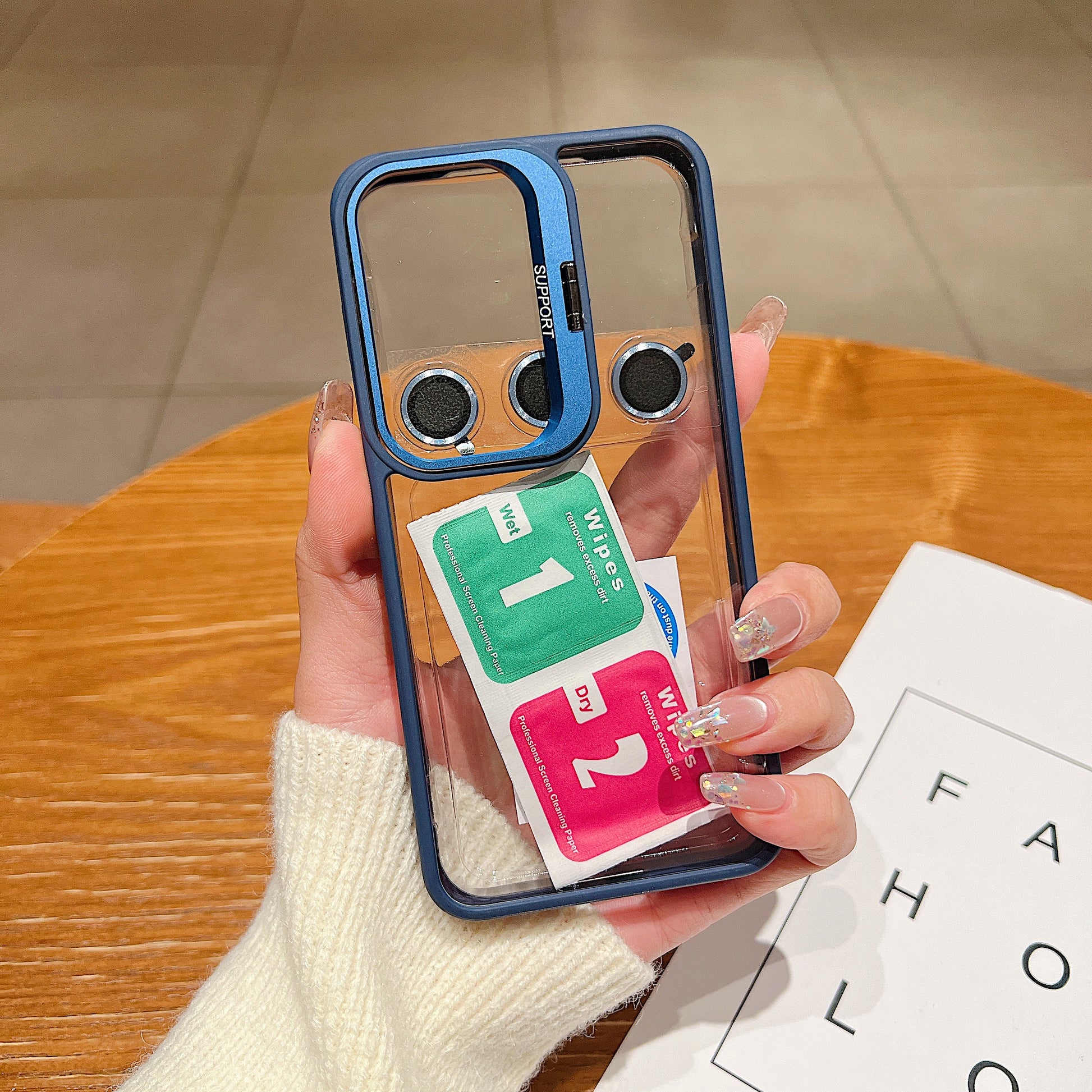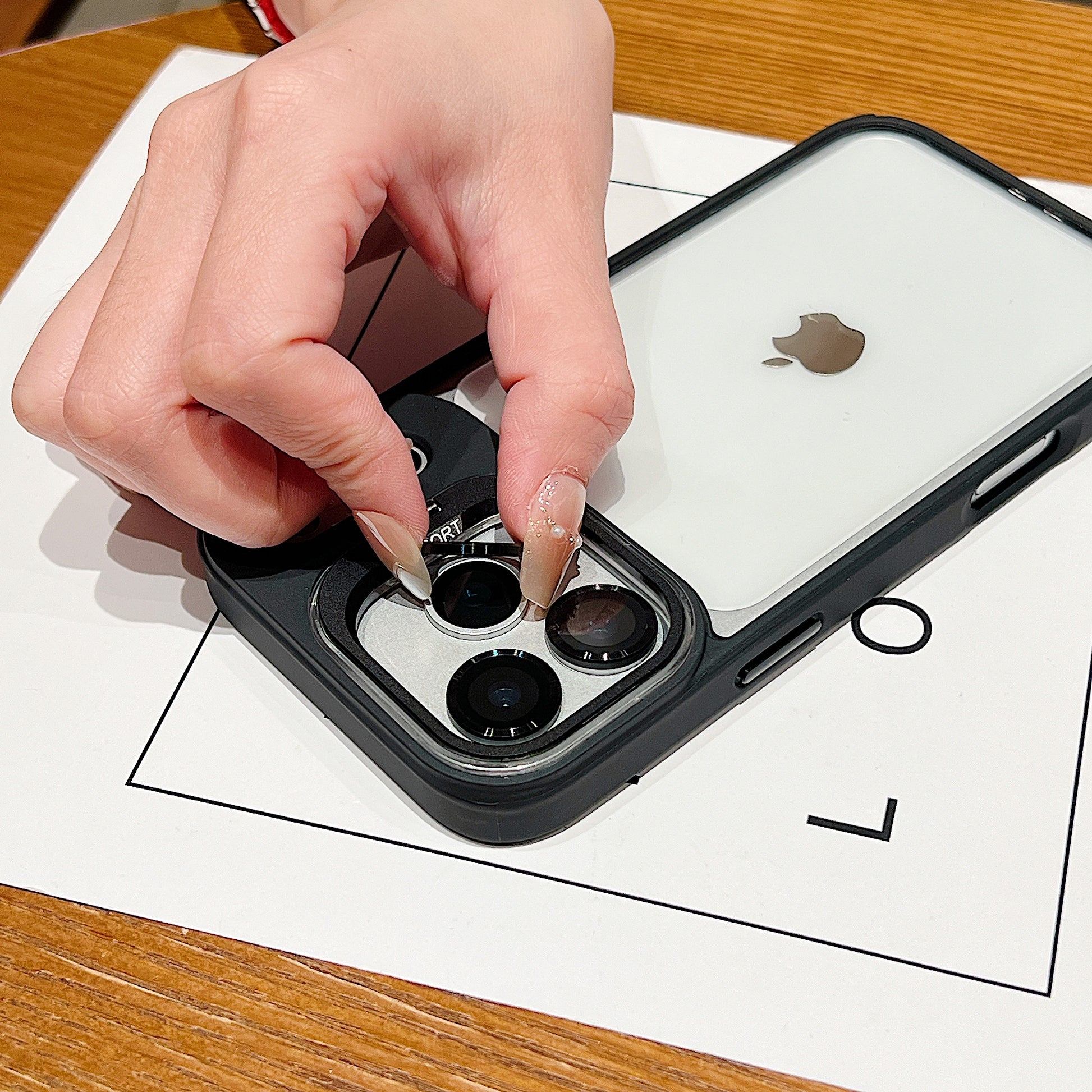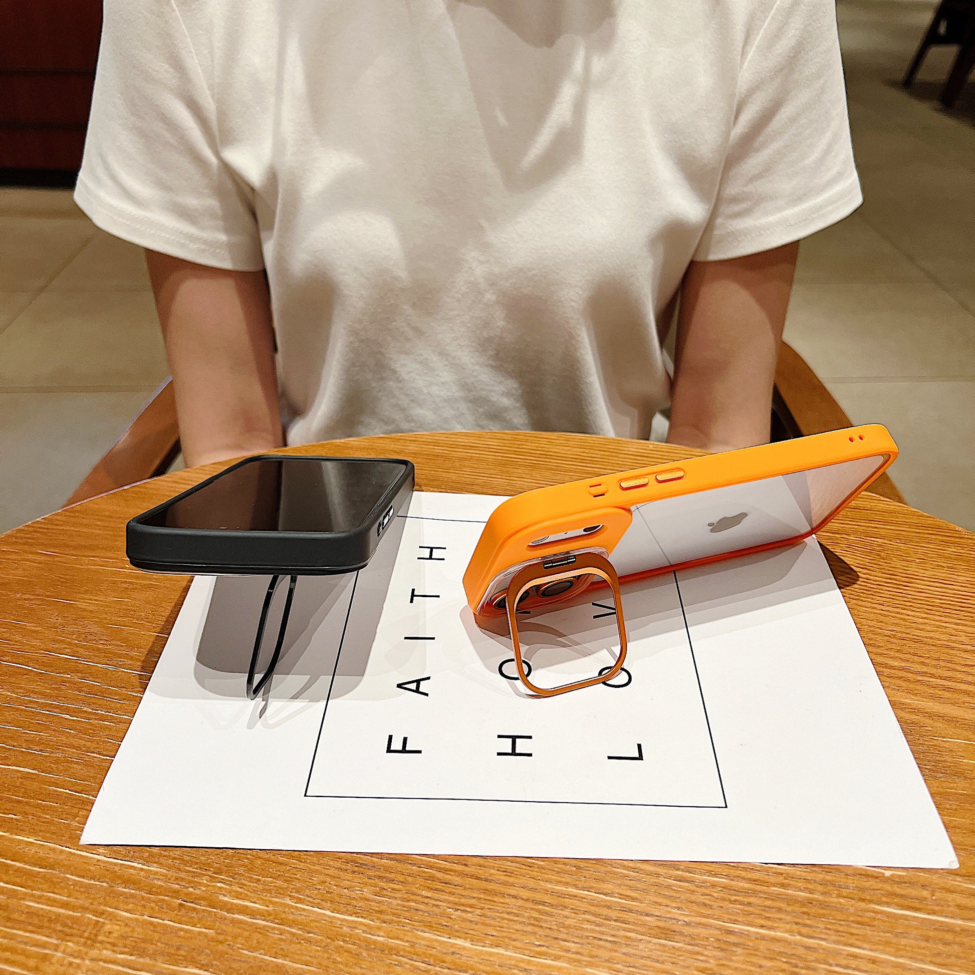 LuxuryKase Clear Case | Metal Lens Protector & 180° Rotating Bracket | Shockproof Transparent Hard Back Cover with Soft TPU Frame For iPhone & Samsung
