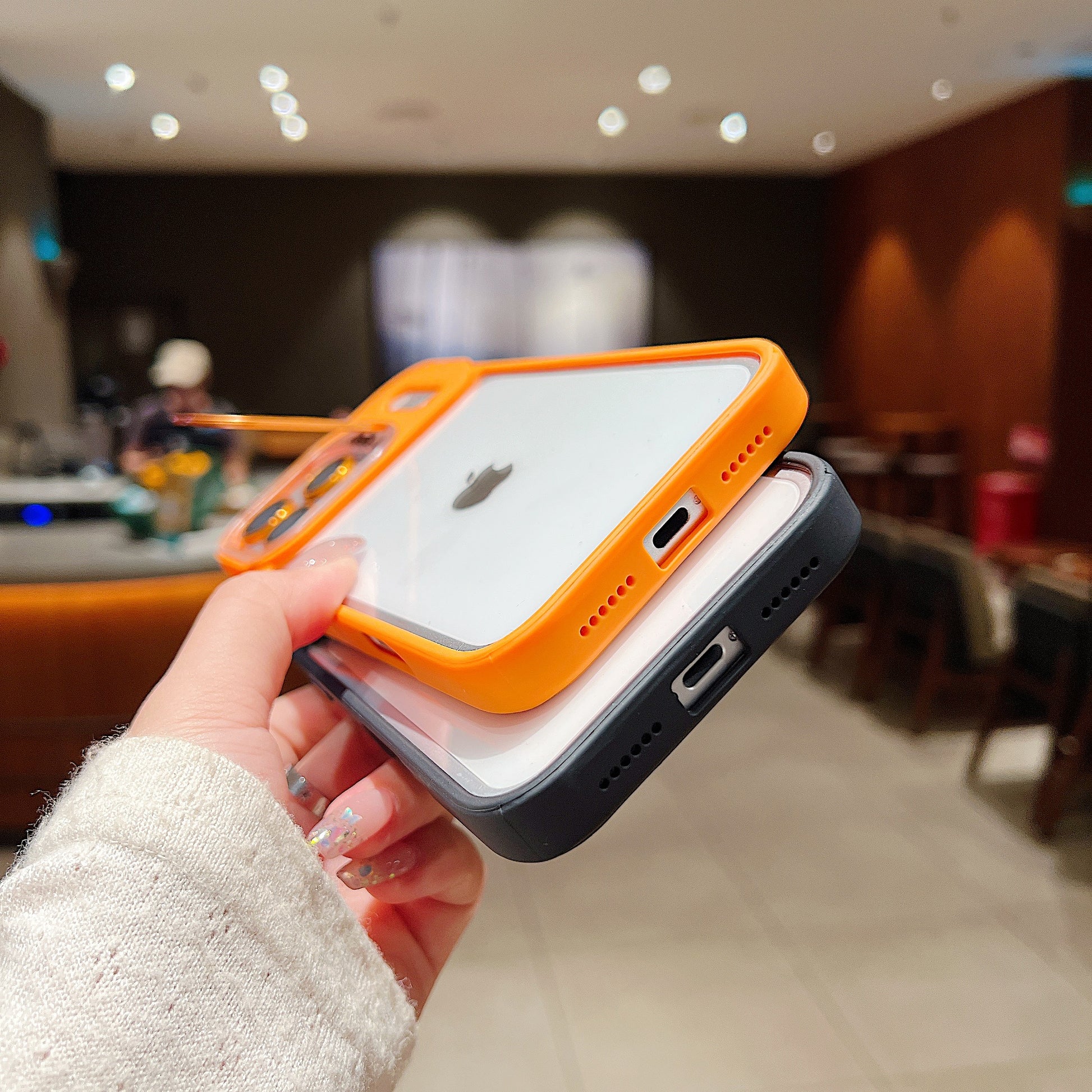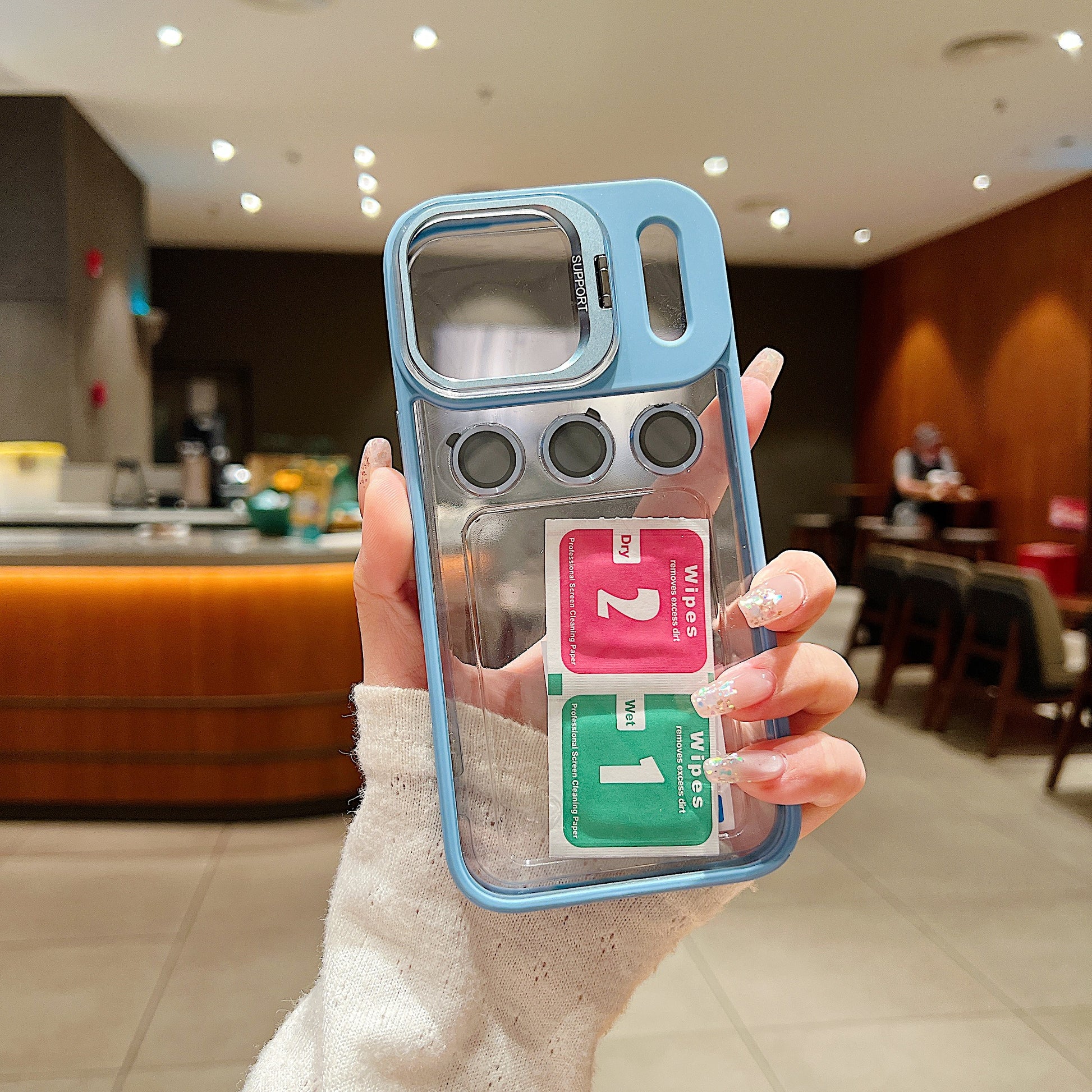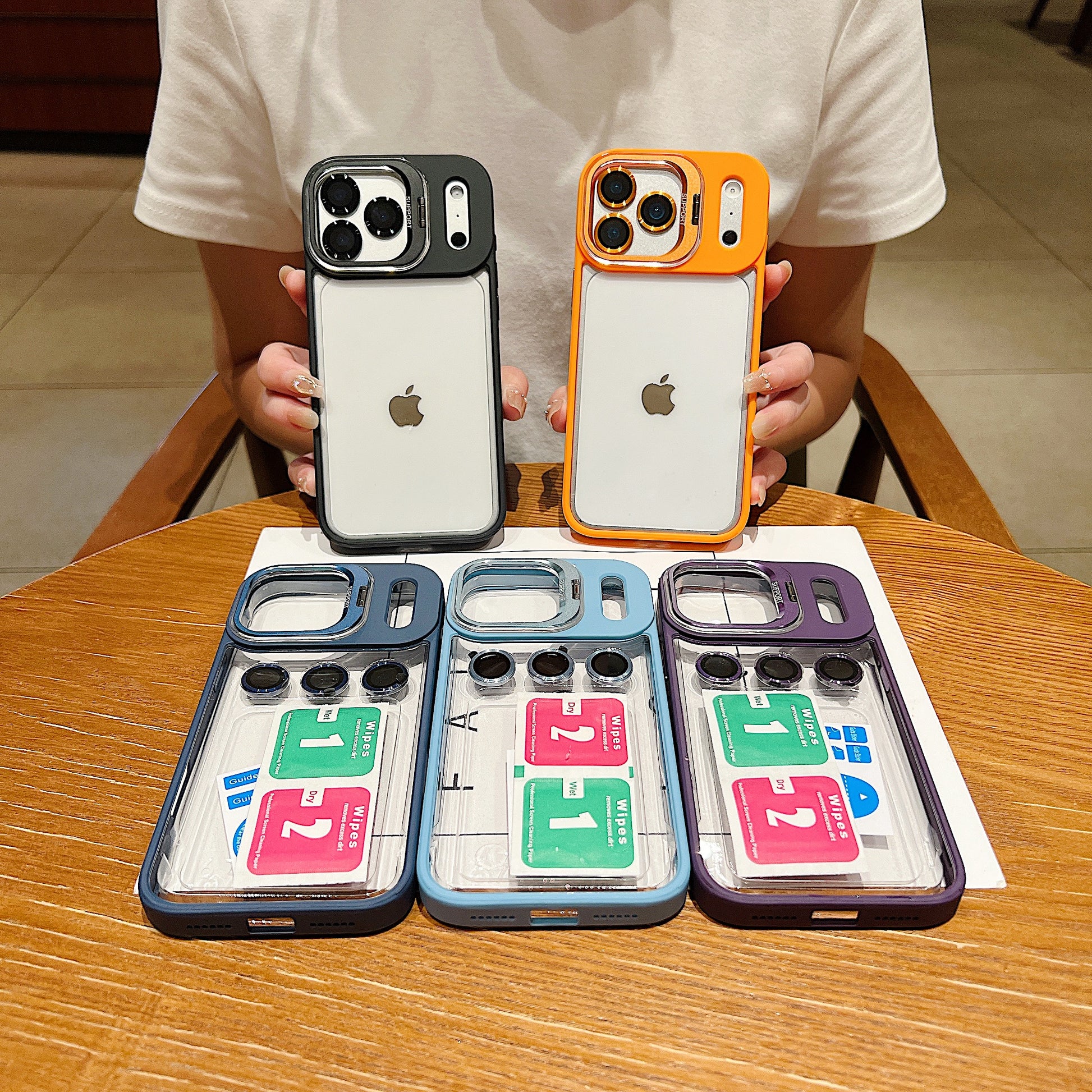 LuxuryKase Clear Case | Metal Lens Protector & 180° Rotating Bracket | Shockproof Transparent Hard Back Cover with Soft TPU Frame For iPhone & Samsung