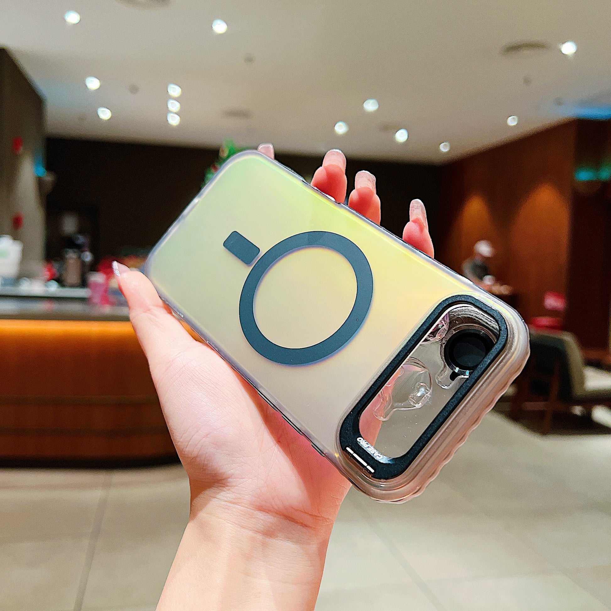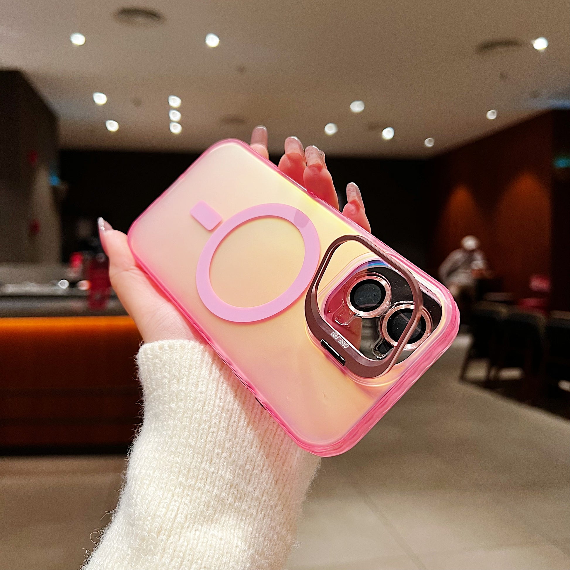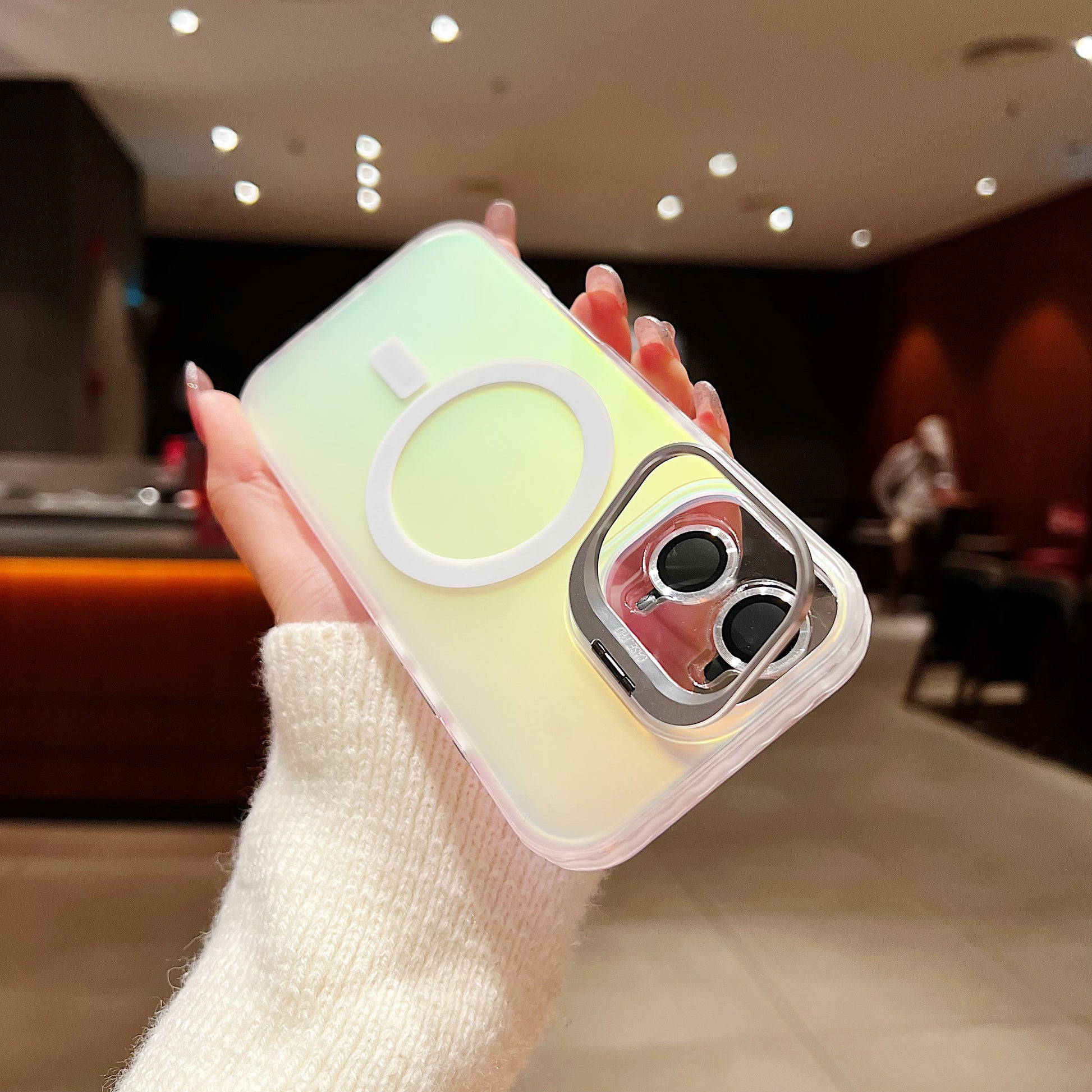 LuxuryKase LK169 Laser Gradient Lens Holder Stand Mag-Safe Case Cover For iPhone 16 & 17 Series