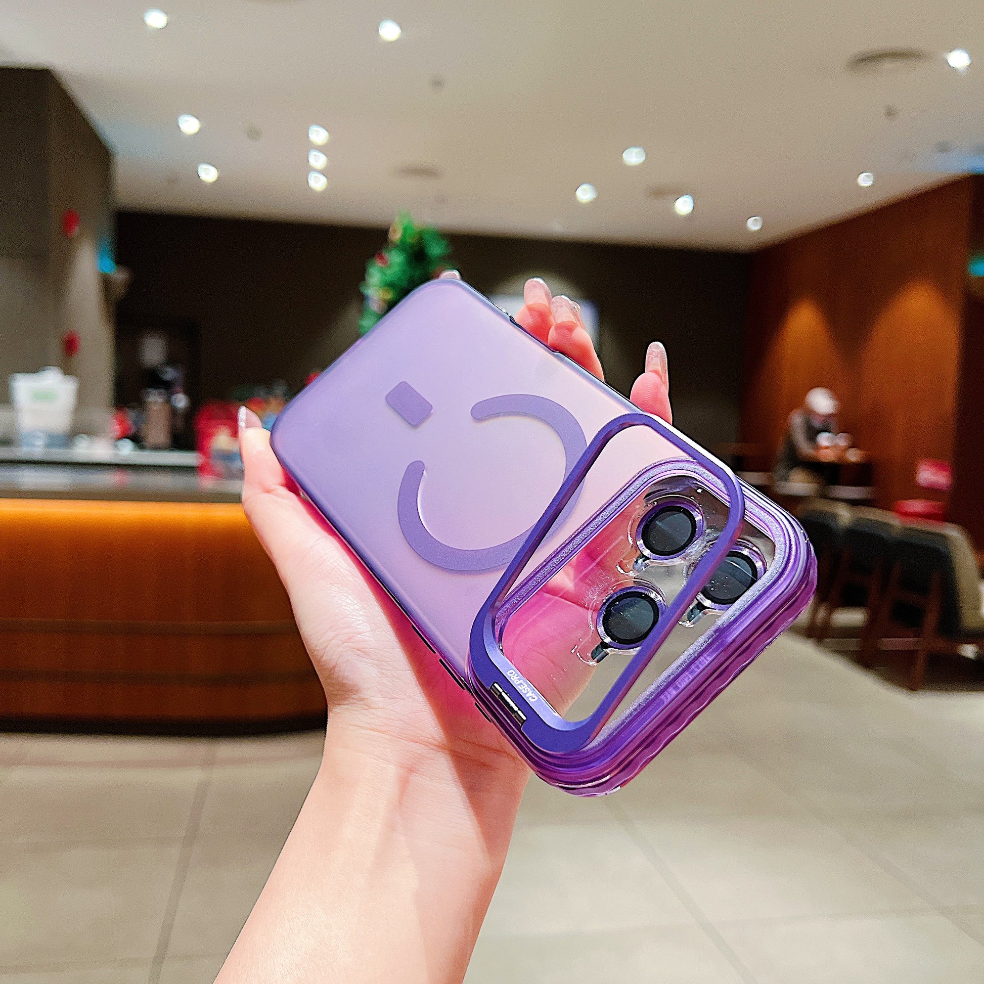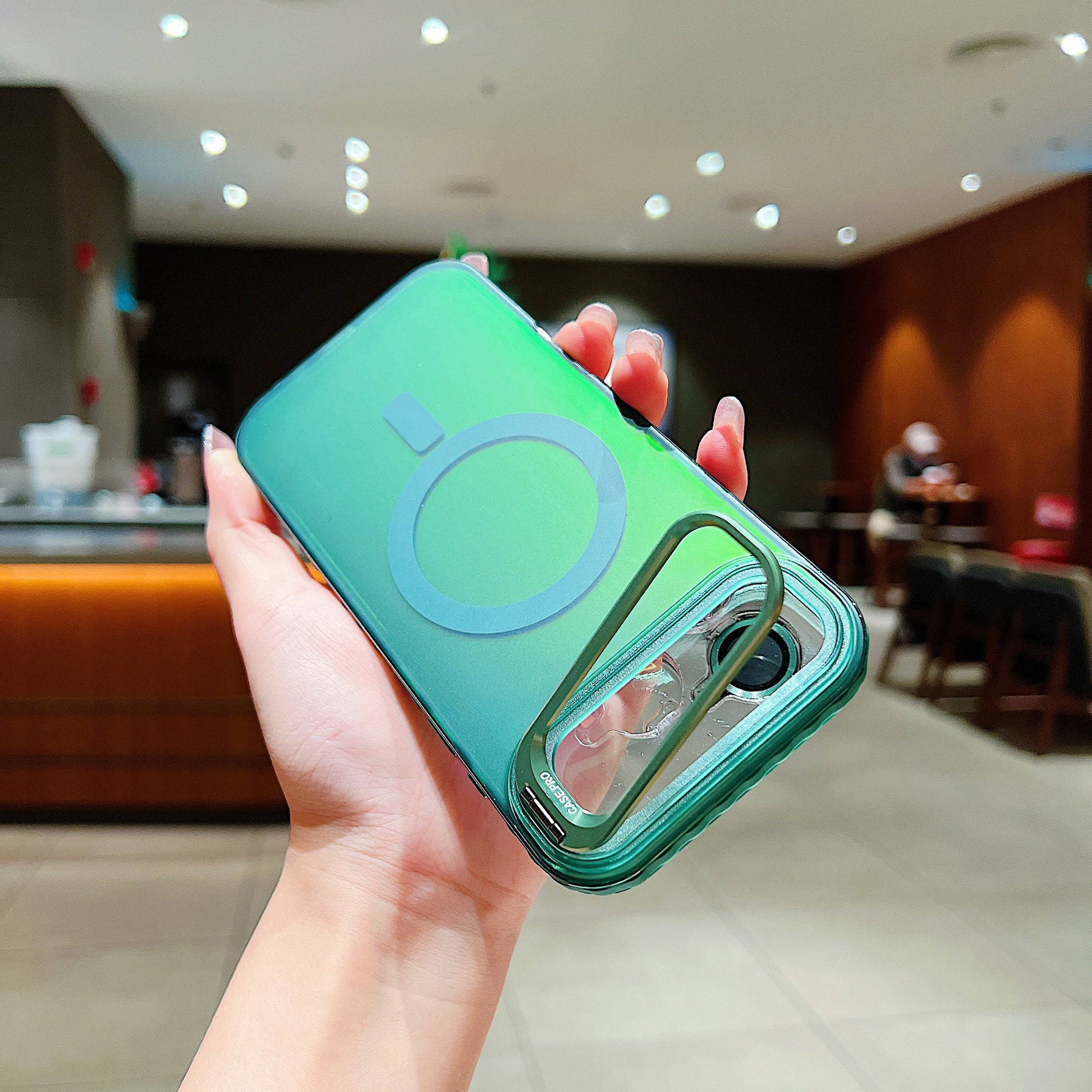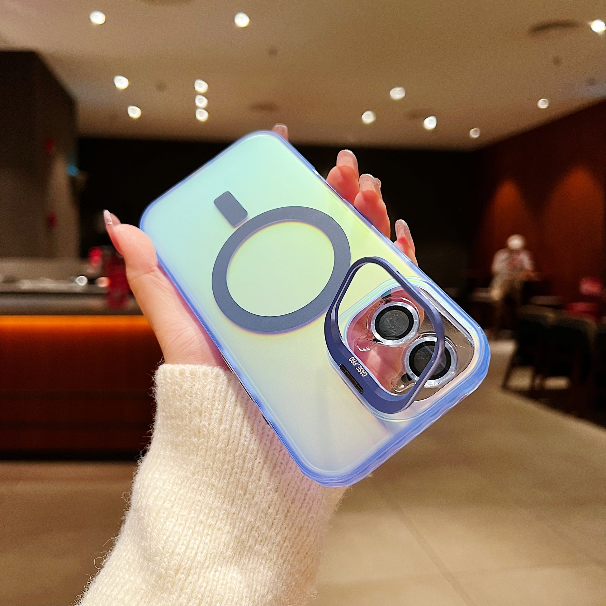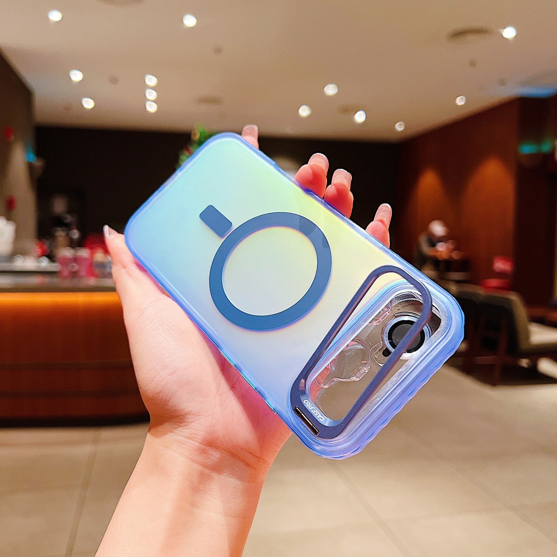 LuxuryKase LK169 Laser Gradient Lens Holder Stand Mag-Safe Case Cover For iPhone 16 & 17 Series