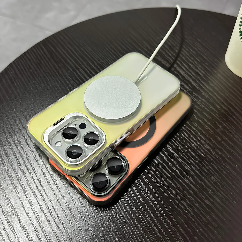 LuxuryKase Mag-Safe Shockproof Gradient Matte Case | Metal Camera Lens Protector & Kickstand | Slim & Edge Protective Cover For iPhone