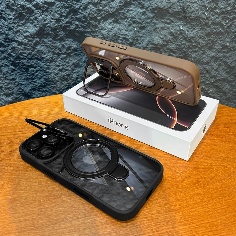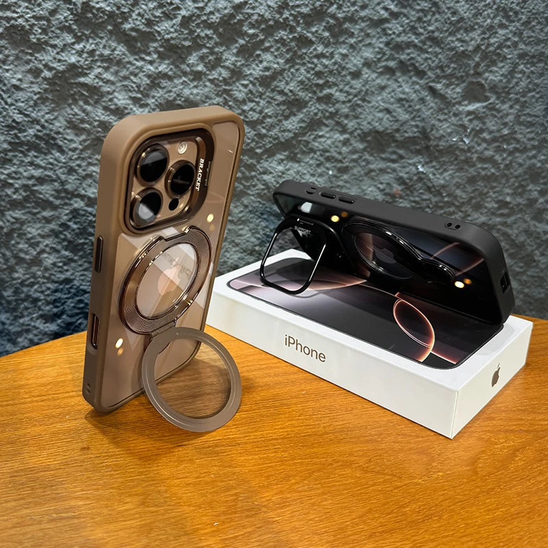 LuxuryKase Magnetic Clear Case | Metal Ring Stand | Camera Lens Protector Rings | Shockproof Hard PC Back | Mag-Safe Compatible | TPU Bumper For iPhone & Samsung Series