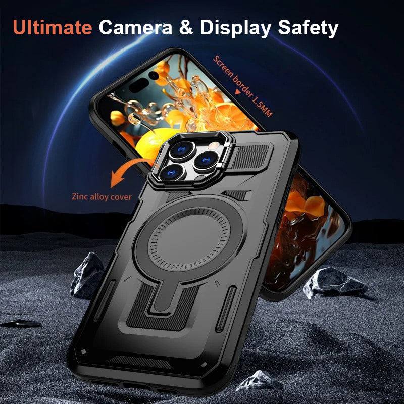 LuxuryKase Rugged Shockproof Magnetic Case with Kickstand | Dual Layer TPU+PC Protection | Mag-Safe Compatible | Camera Guard | Extreme Drop Resistance For iPhone Series