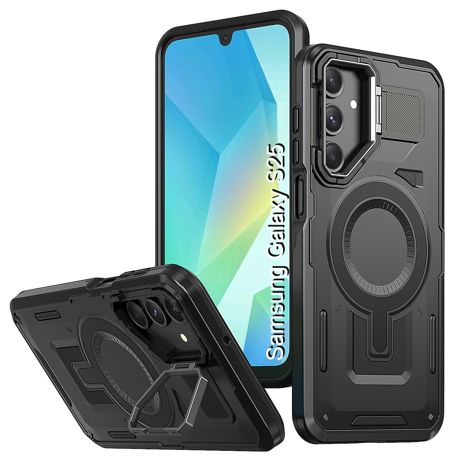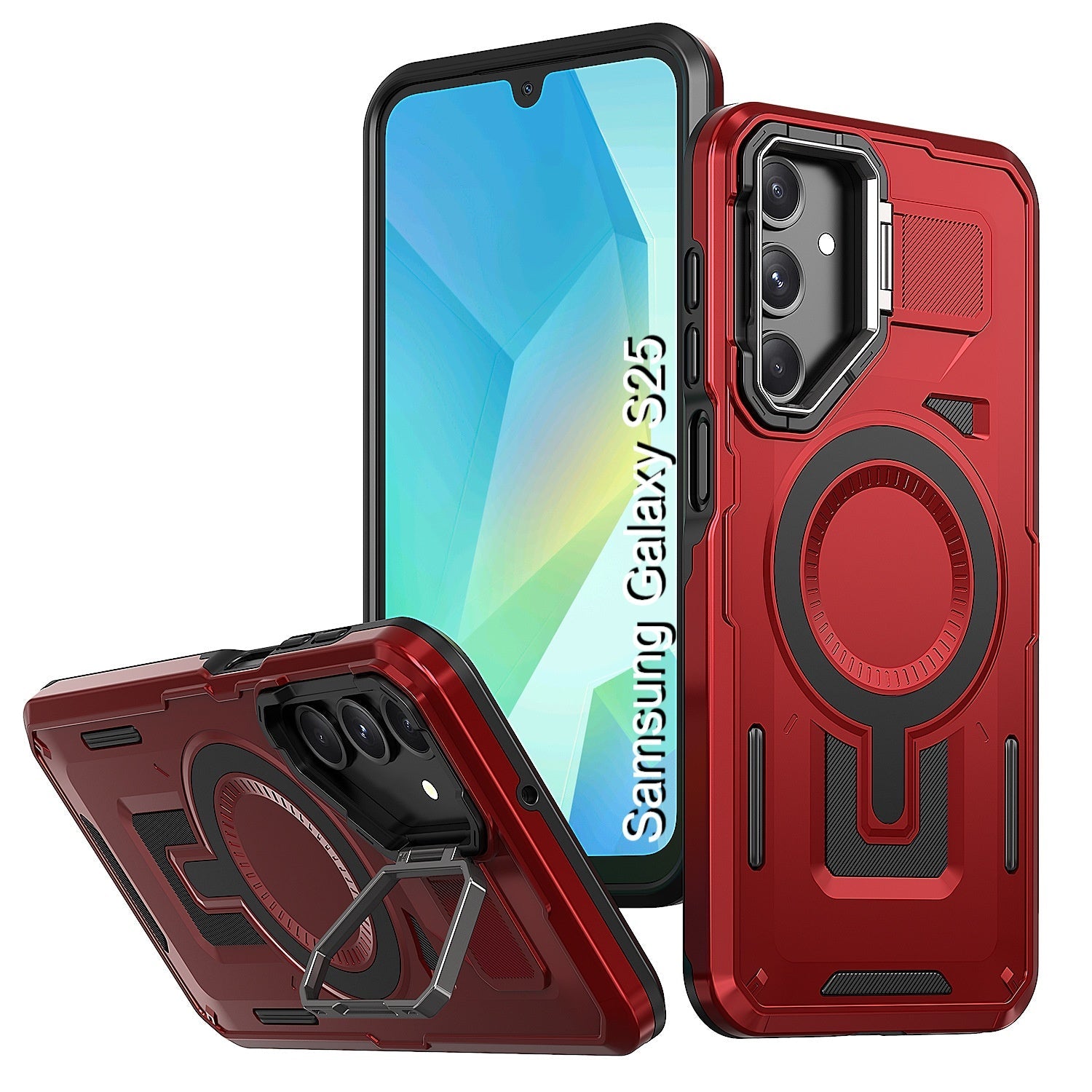 LuxuryKase Rugged Shockproof Magnetic Case with Kickstand | Dual Layer TPU+PC Protection | Mag-Safe Compatible | Camera Guard | Extreme Drop Resistance For Samsung Series